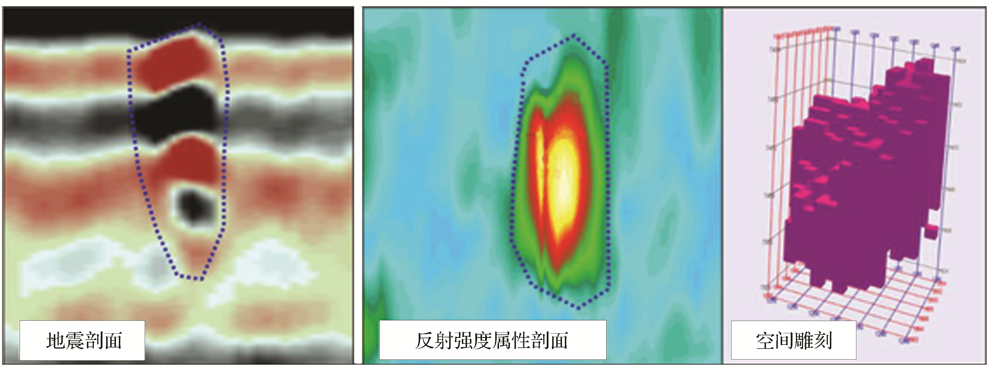 图13 片状反射地震相空间雕刻示意Fig.13 Sketch map of patch reflection seismic phase space sculpture |
