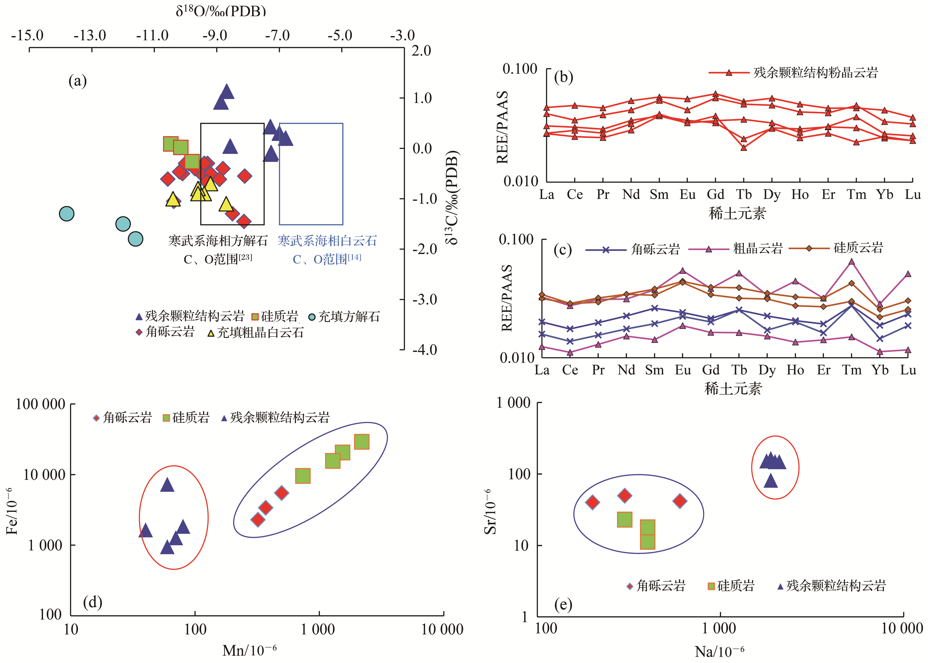 | 样品编号 | 岩性 | Sr/10-6 | Mn/10-6 | Na/10-6 | Fe/10-6 |
