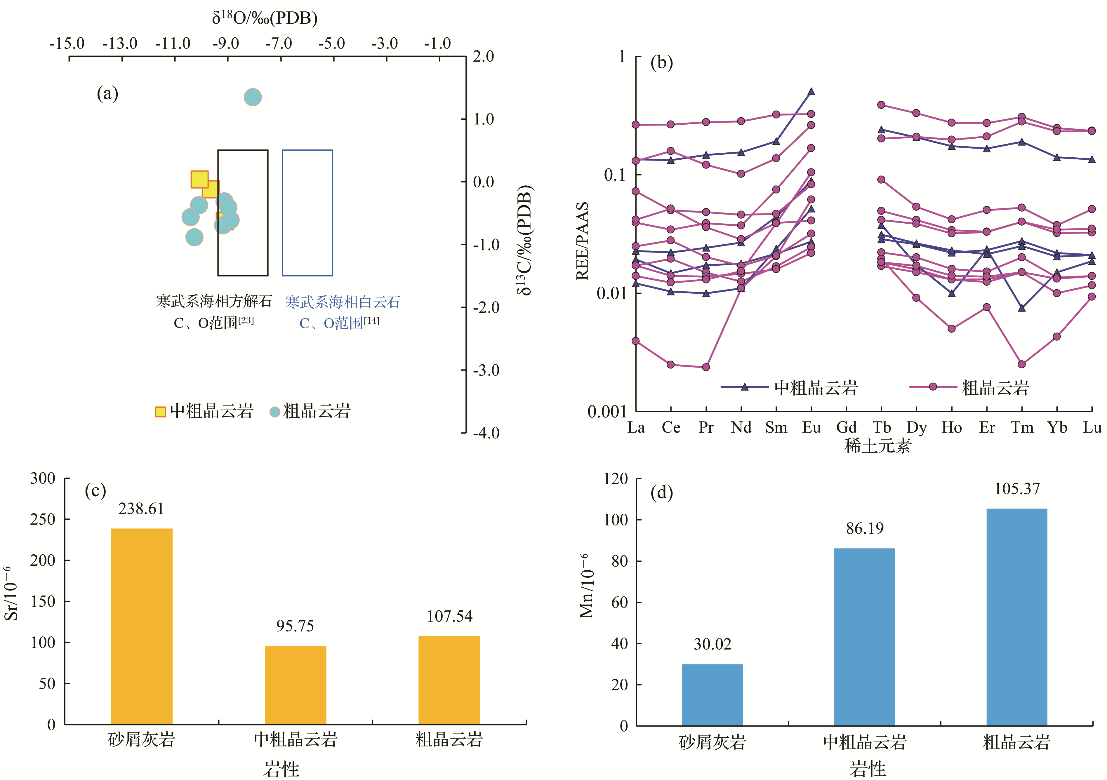 | CT1-34 | 粗晶云岩 | 0.47 | 0.89 | 0.12 | 0.49 | 0.08 | 0.02 | 0.08 | 0.01 | 0.07 | 0.01 | 0.04 | 0.01 | 0.03 | 0.01 | 2.32 | 2.06 | 0.25 | 8.13 | 1.22 | 0.88 |