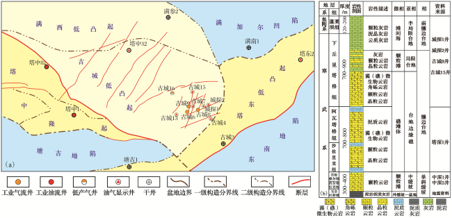 表1 古城地区上寒武统碳酸盐岩储层类型与特征Table 1 Types and characteristics of Upper Cambrian carbonate reservoirs in Gucheng area |