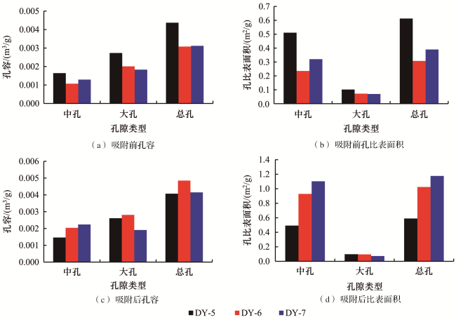 2.2 甲烷等温吸附前后煤岩孔隙结构特征