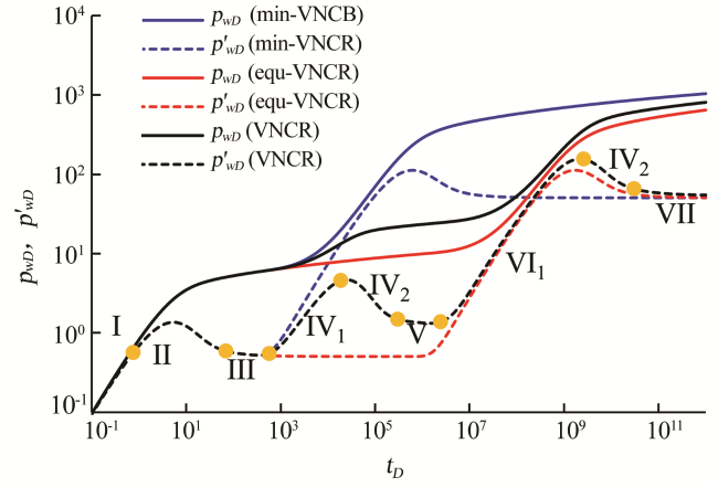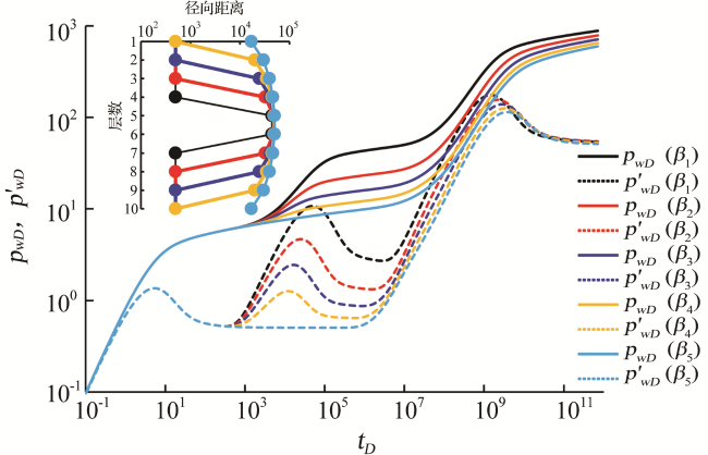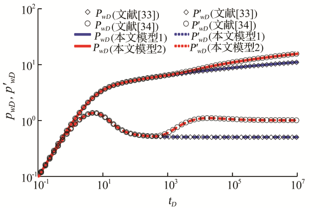 | 解释参数 | 本文模型 (3层VNCR储层) | 文献[21]模型 (单层径向复合储层) |