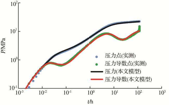 图13 P井压力恢复试井数据拟合结果Fig.13 Matching results for pressure buildup well-testing data of Well P |