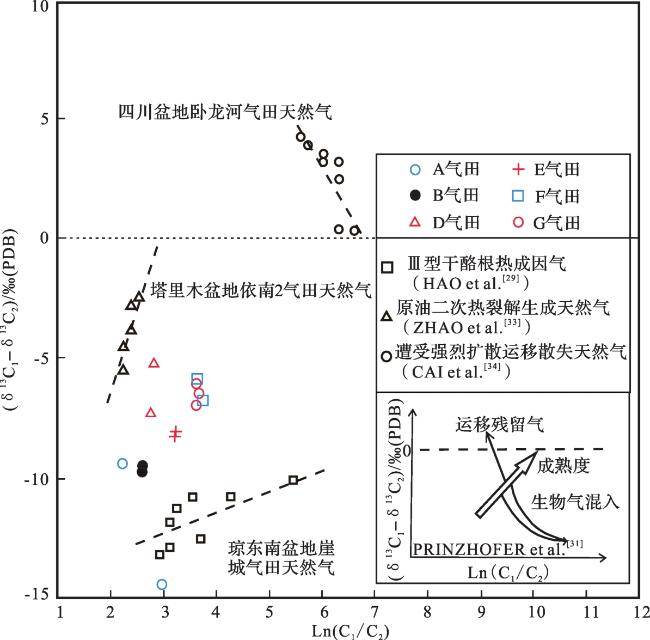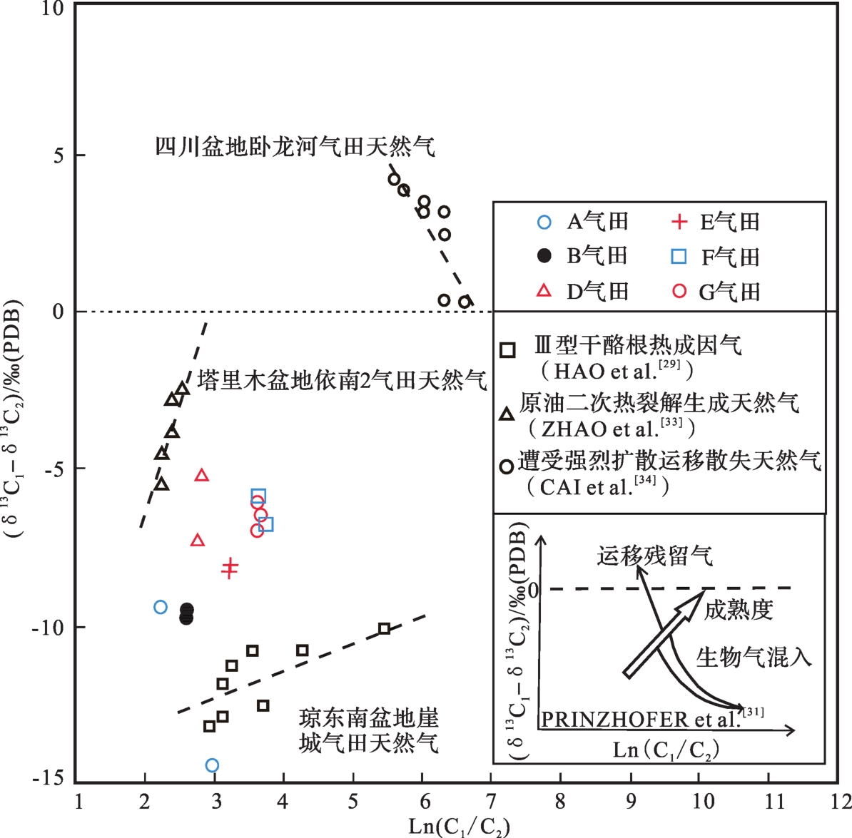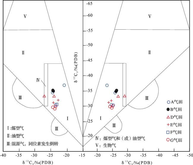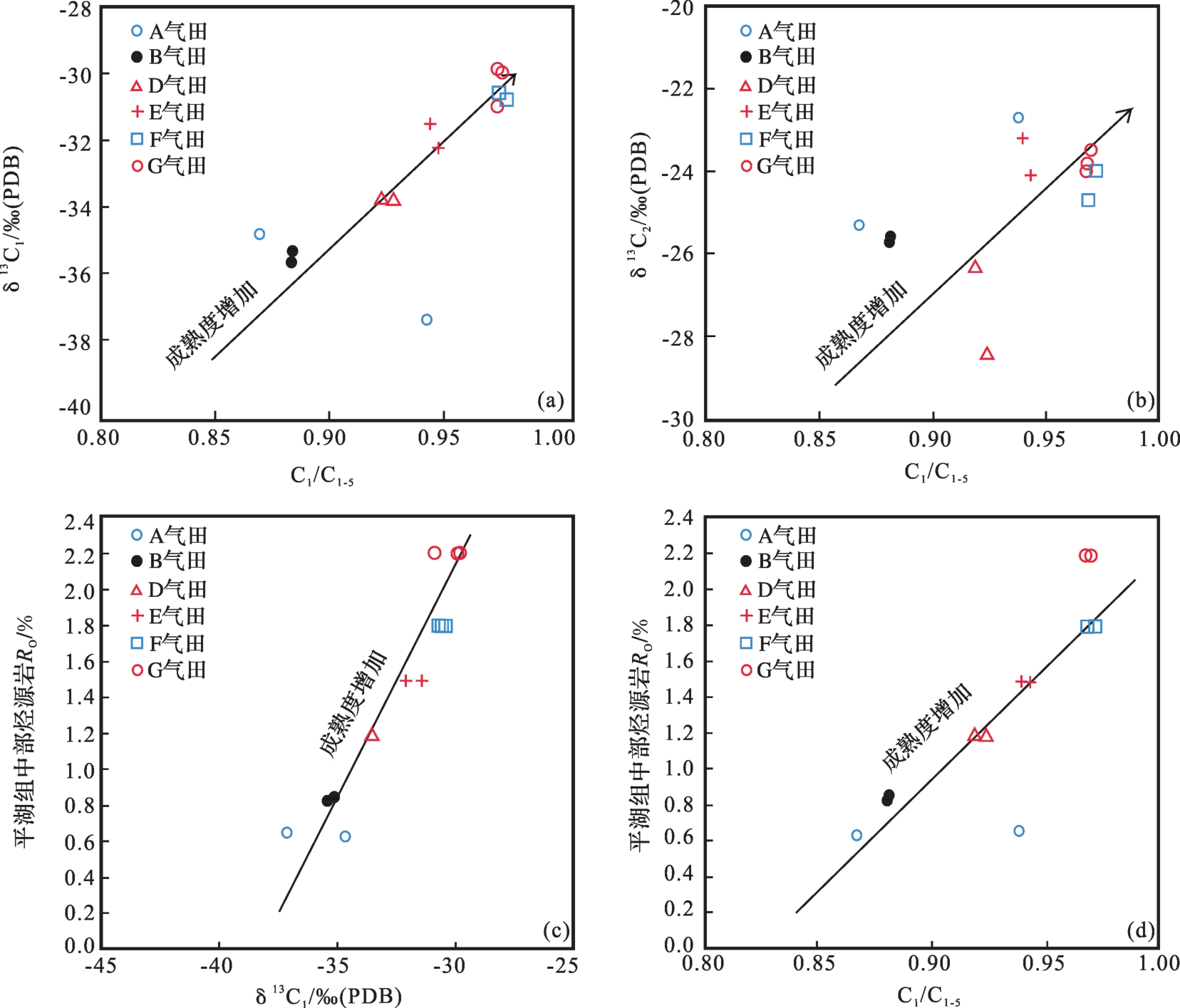 表1 东海盆地西湖凹陷中北部天然气地球化学参数Table 1 Geochemical parameters of natural gas in central-northern Xihu Sag, East China Sea Basin |
