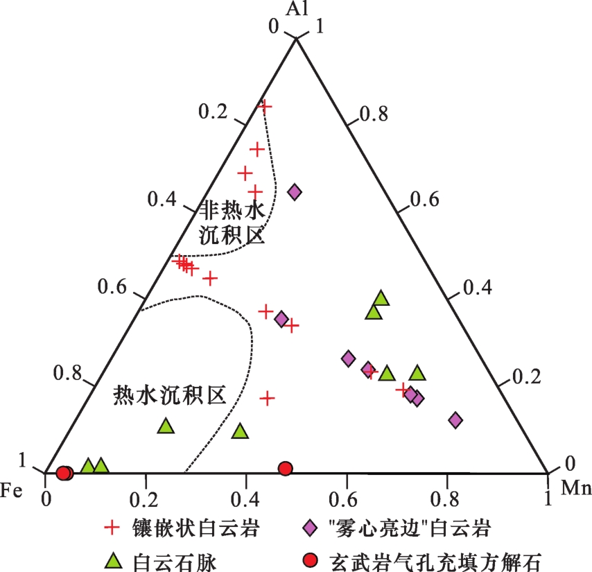 表1 川东地区茅口组白云岩不同类型白云石主量元素特征Table 1 Major element characteristics of different types of dolomite in Maokou Formation, eastern Sichuan Basin |
