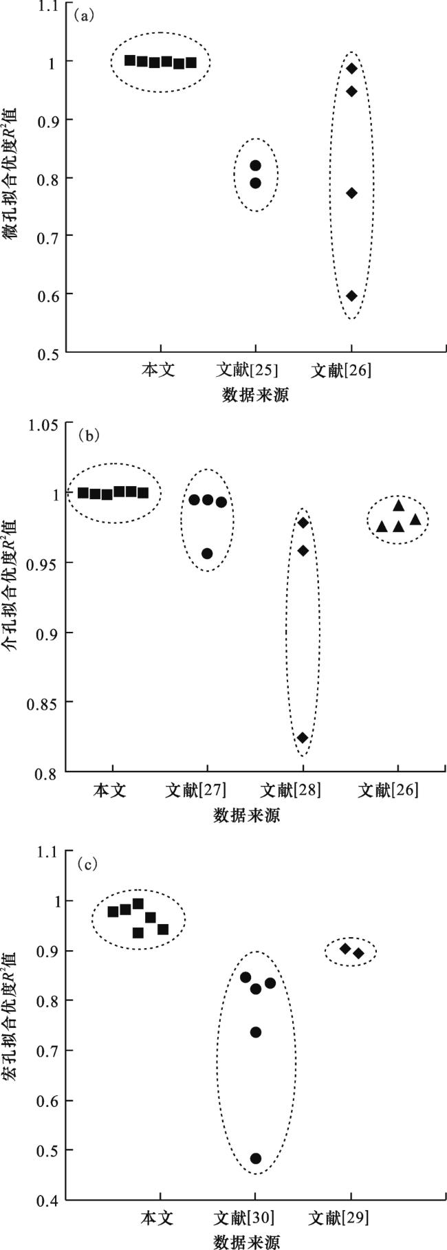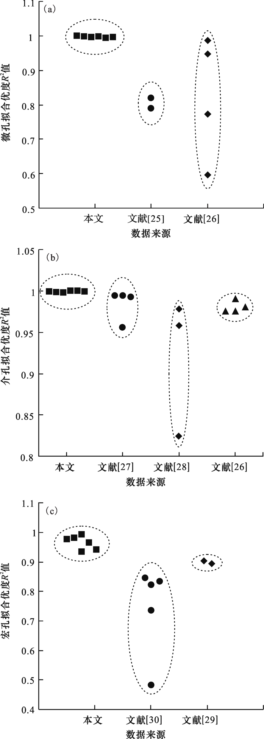 18]中的微孔分形维数计算结果,这可能是由于计算孔径范围和计算模型共同造成的。文献[