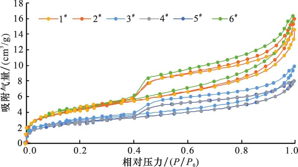 表2 基于氩气吸附实验的样品孔隙结构参数Table 2 Argon adsorption experiment pore structure parameters of samples |