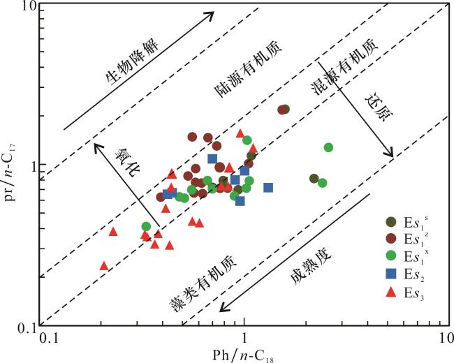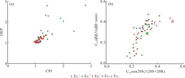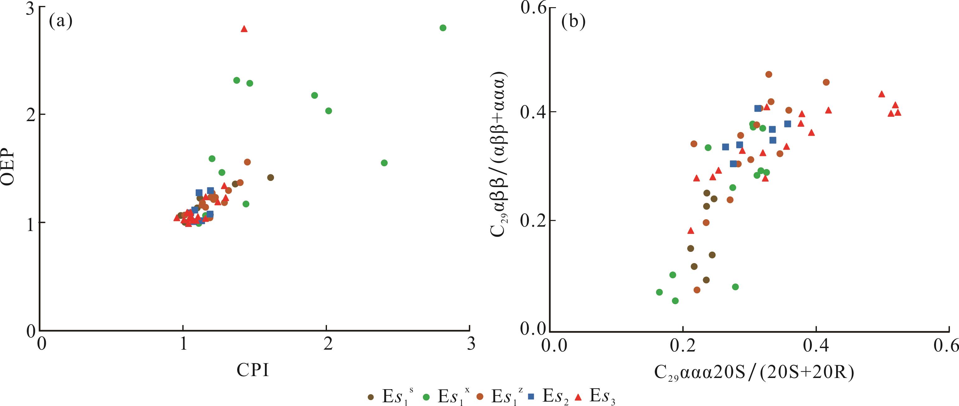 表3 歧口凹陷沙河街组烃源岩碳氧同位素测试结果及古盐度指标统计Table 3 Carbon and oxygen isotope test results and paleosalinity index of Shahejie Formation source rocks in Qikou Sag |