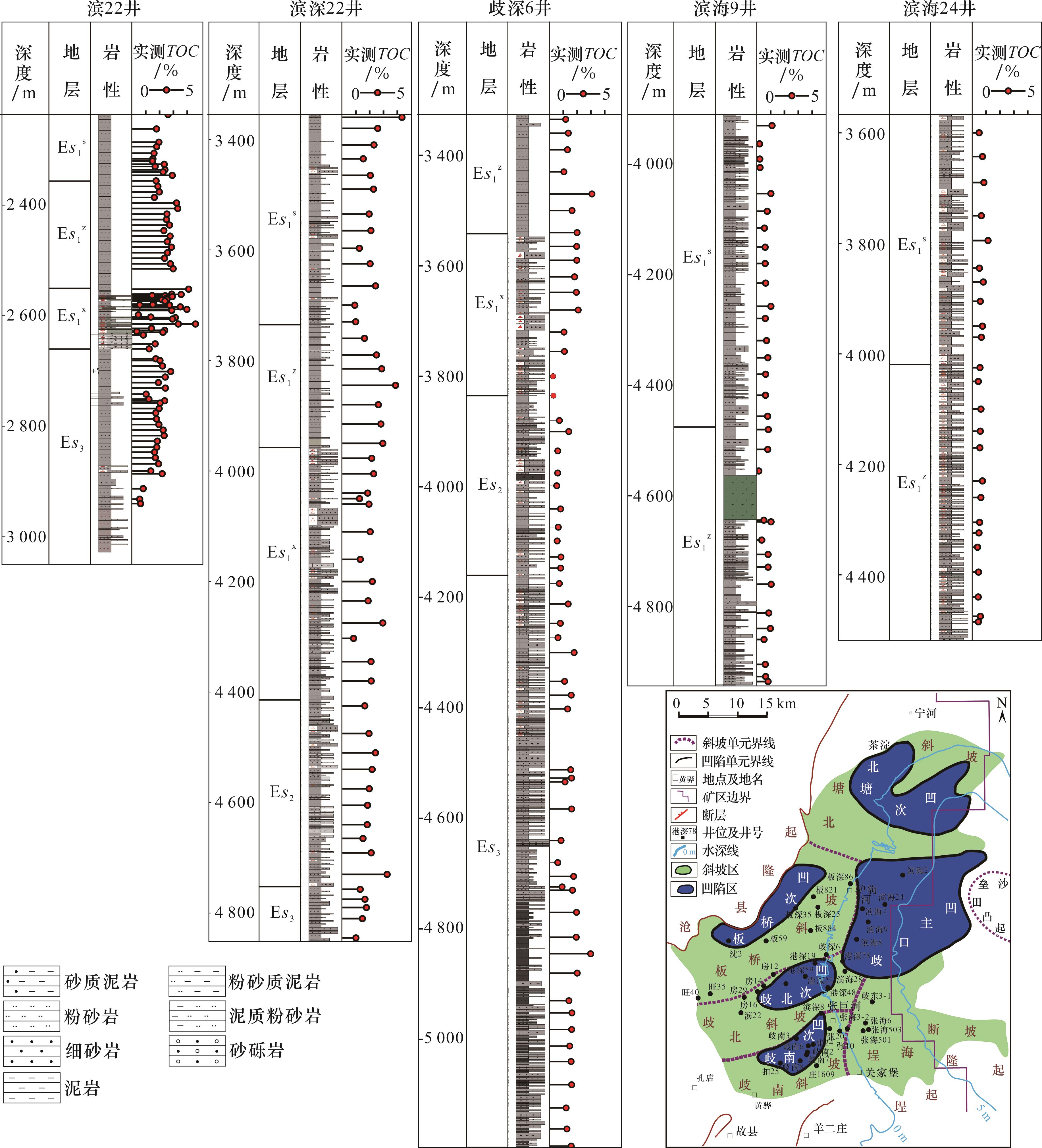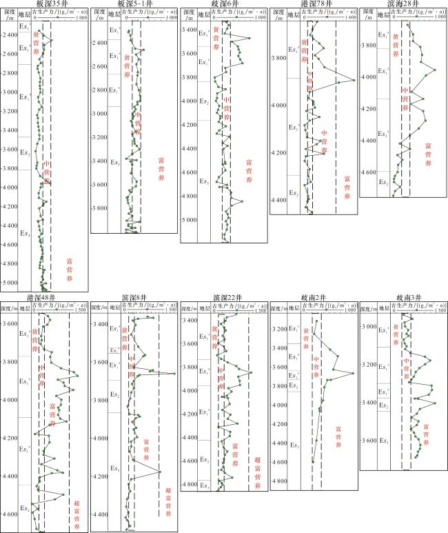表2 歧口凹陷沙河街组烃源岩有机质丰度统计Table 2 Statistical table of organic matter abundance in source rocks of Shahejie Formation in Qikou Sag |