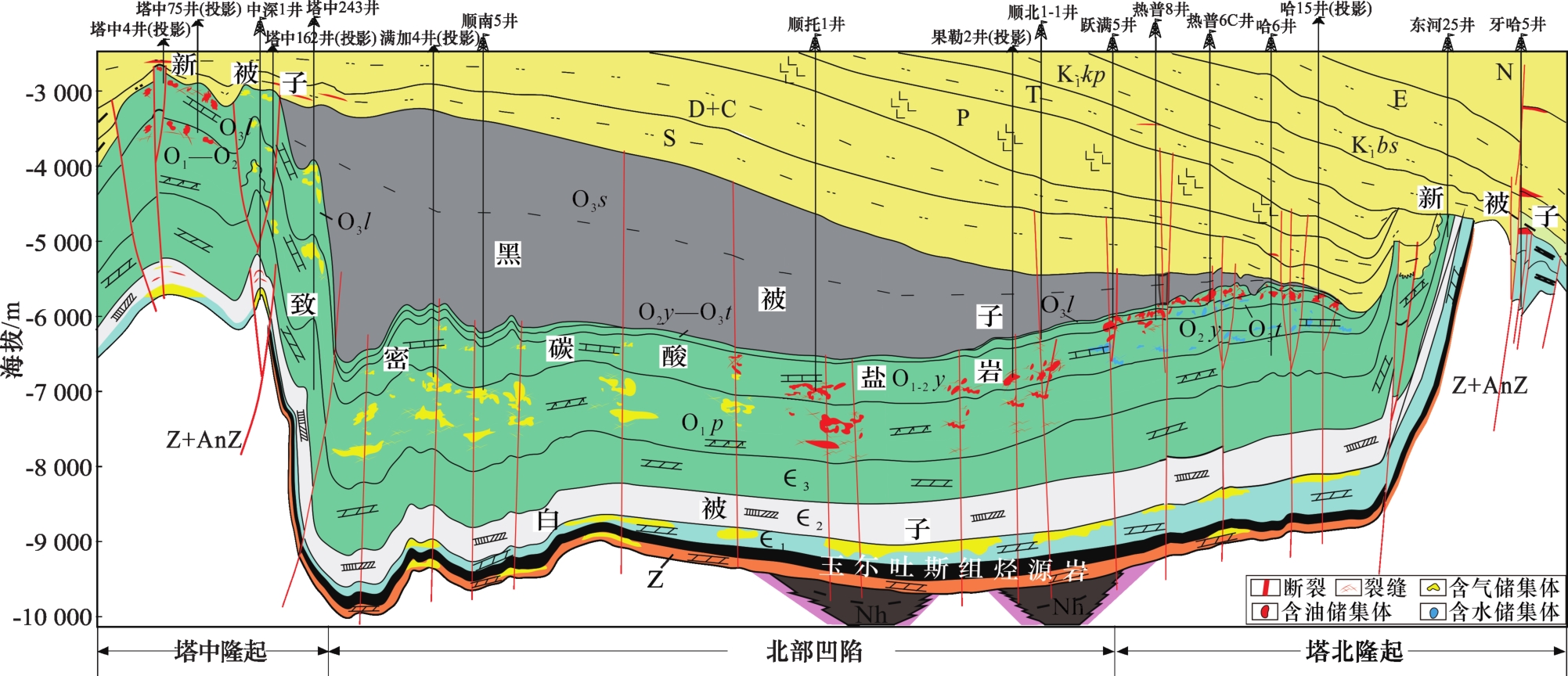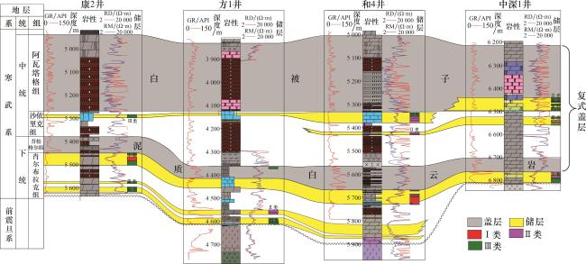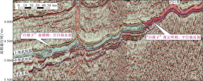 图4 中寒武统“白被子”盖层地震反射特征(剖面位置见图1)Fig.4 The seismic reflection characteristics of “white quilt” cap rock in Middle Cambrian(see Fig.1 for profile location) |