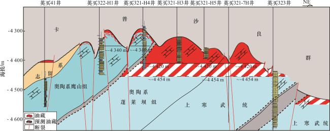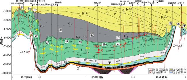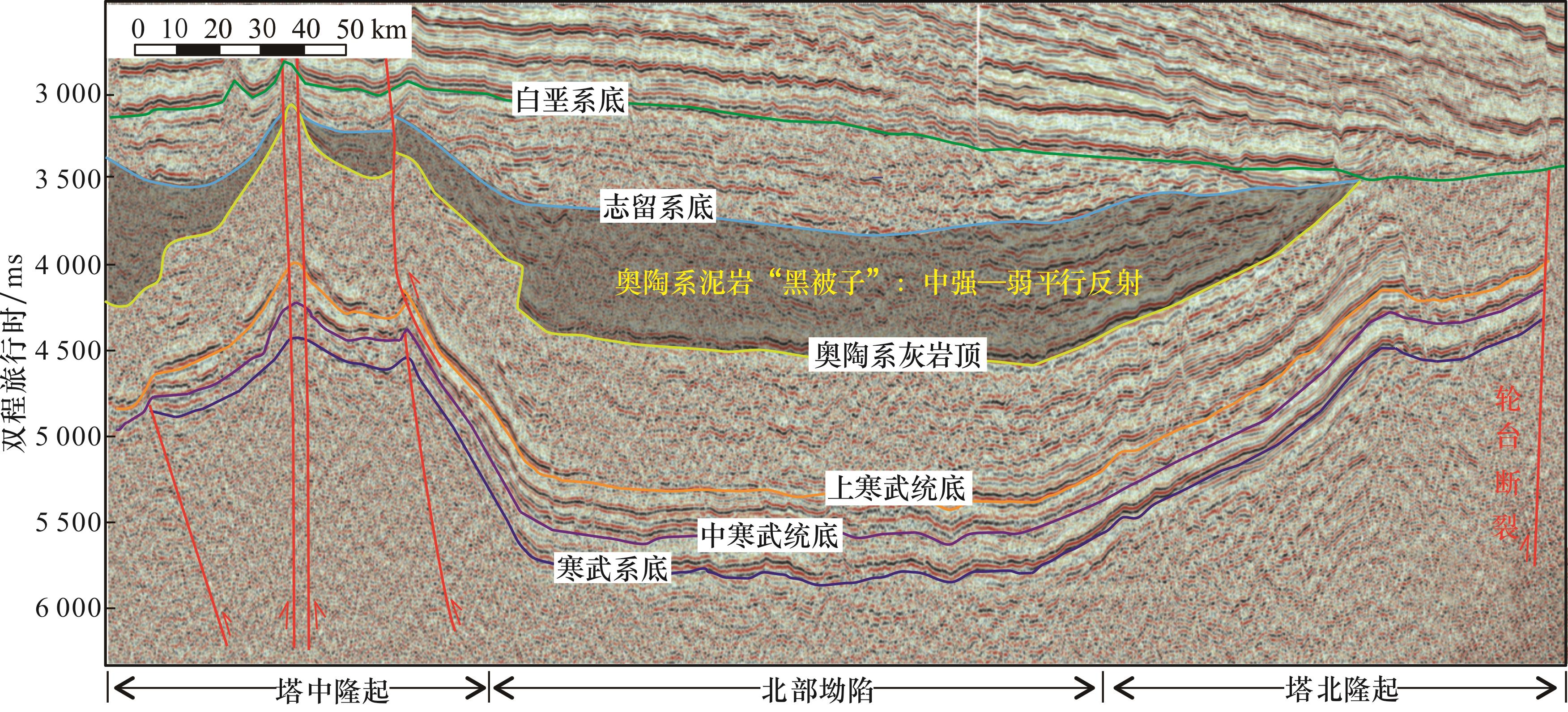 图7 上奥陶统泥岩类“黑被子”盖层地震反射特征(剖面位置见图1)Fig.7 The seismic reflection characteristics of mudstone “black quilt” cap rock in Upper Ordovician (see Fig.1 for profile location) |