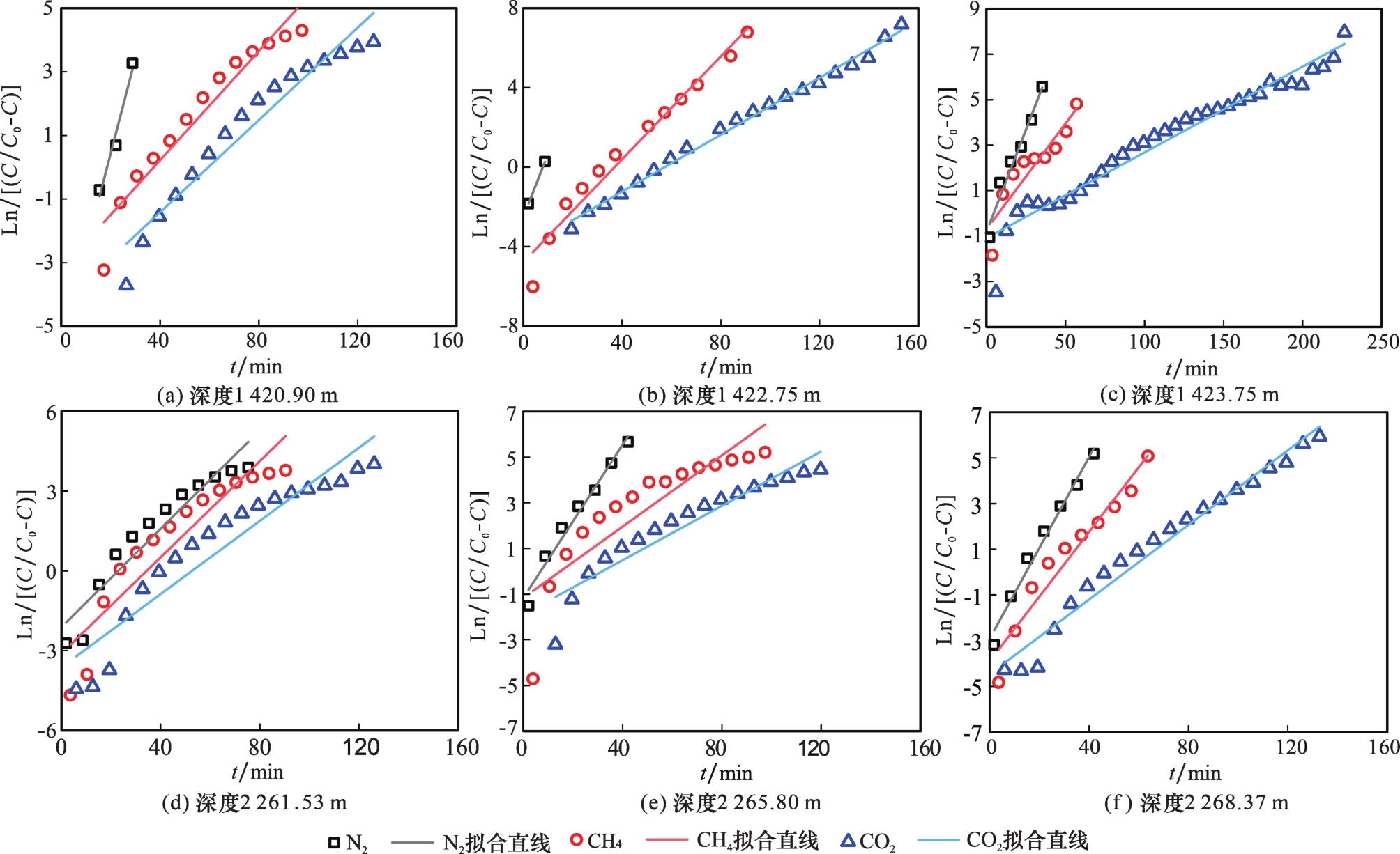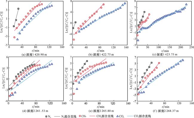 | 深度/m | 组分 | k/min-1 | τ/min | R 2 | 深度/m | 组分 | k/min-1 | τ/min | R 2 |