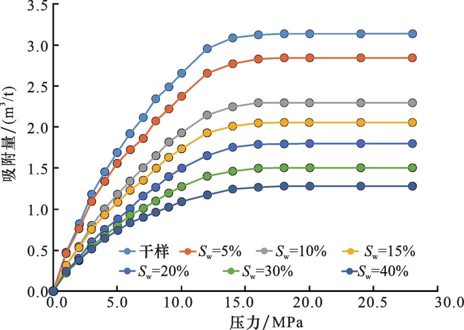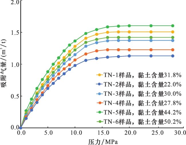 3.3 七个泉组含水泥页岩气体吸附能力分析