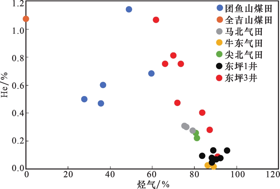 表3 柴北缘地区不同产气层位氦气含量Table 3 Helium content in different gas producing horizons in the northern margin of the Qaidam Basin |