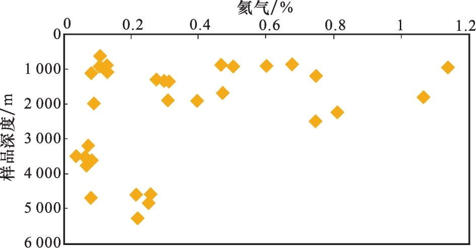 | 层位 | 样品数 /个 | He含量达到0.1%的样品数/个 | He含量达到0.1%的样品占比/% | He平均含量/% |