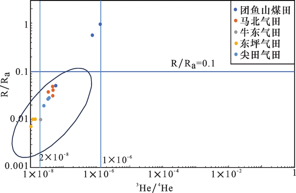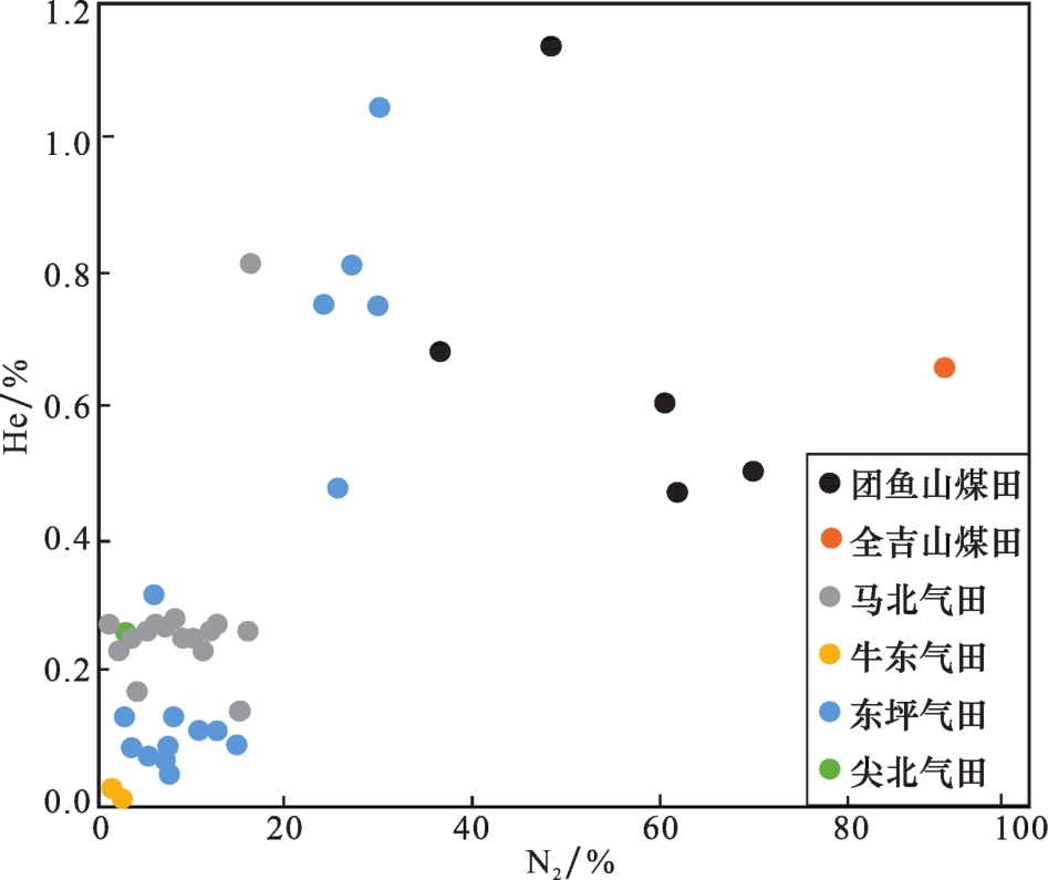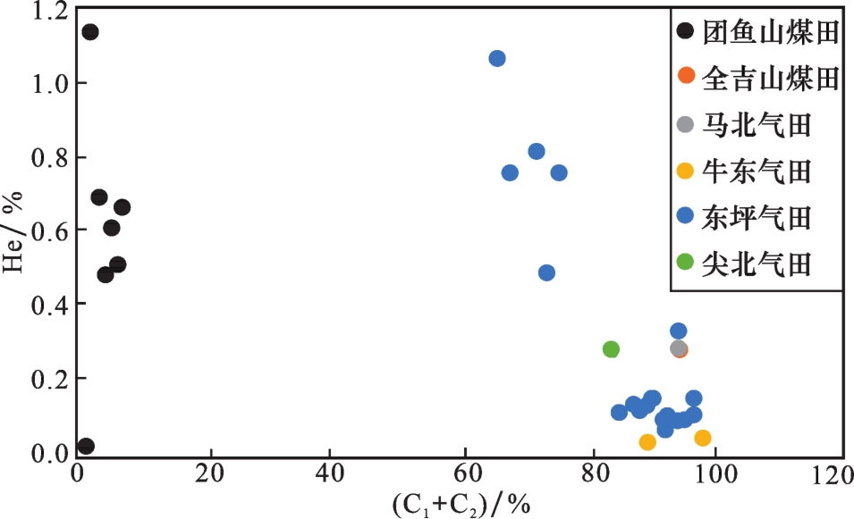 表2 柴北缘地区不同产气区块氦气含量Table 2 Helium content in different gas producing blocks in the northern margin of Qaidam Basin |