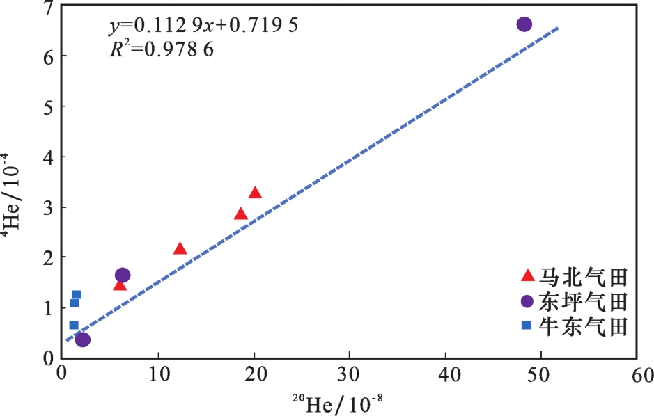 | 样品 | 气田 | 4He/10-4 | 20Ne/10-8 |