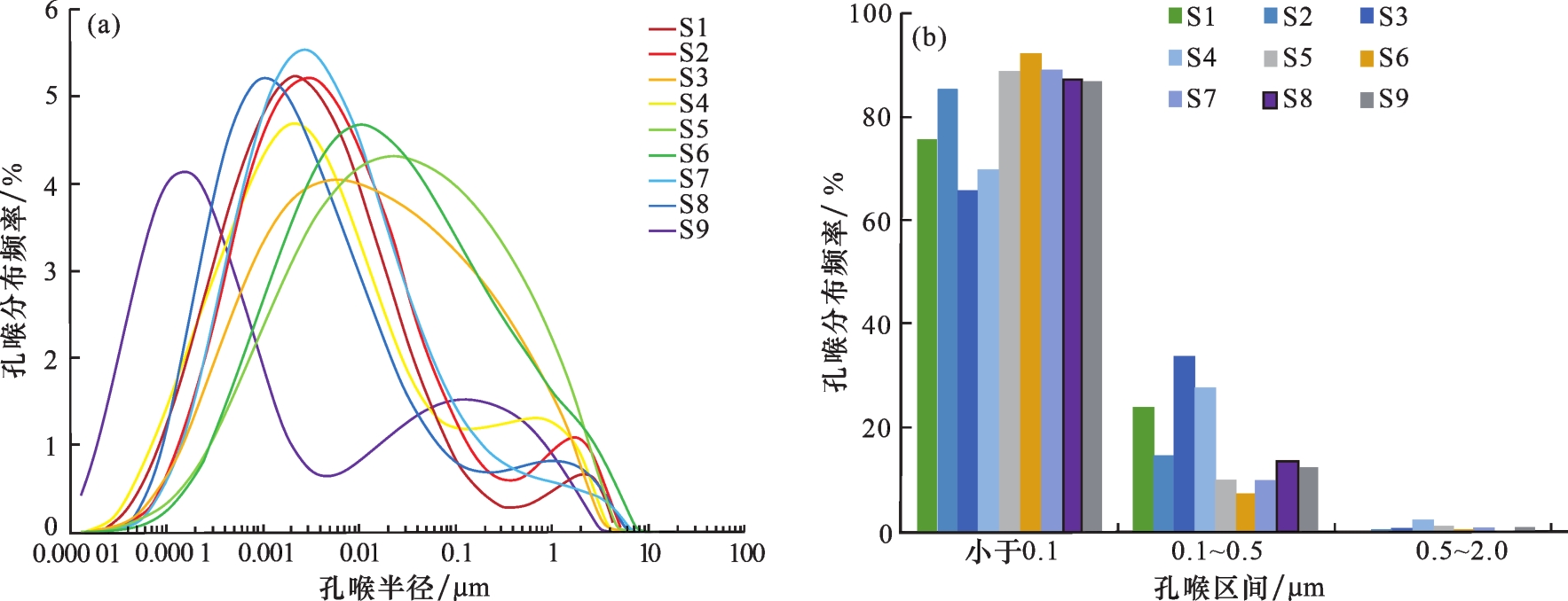 | Ⅲ 类 | 2~4 | <0.01 | <10 | 黏土矿物晶间孔 | <0.5 | 2.40~2.65 | 2.35~2.85 | S1,S8 |