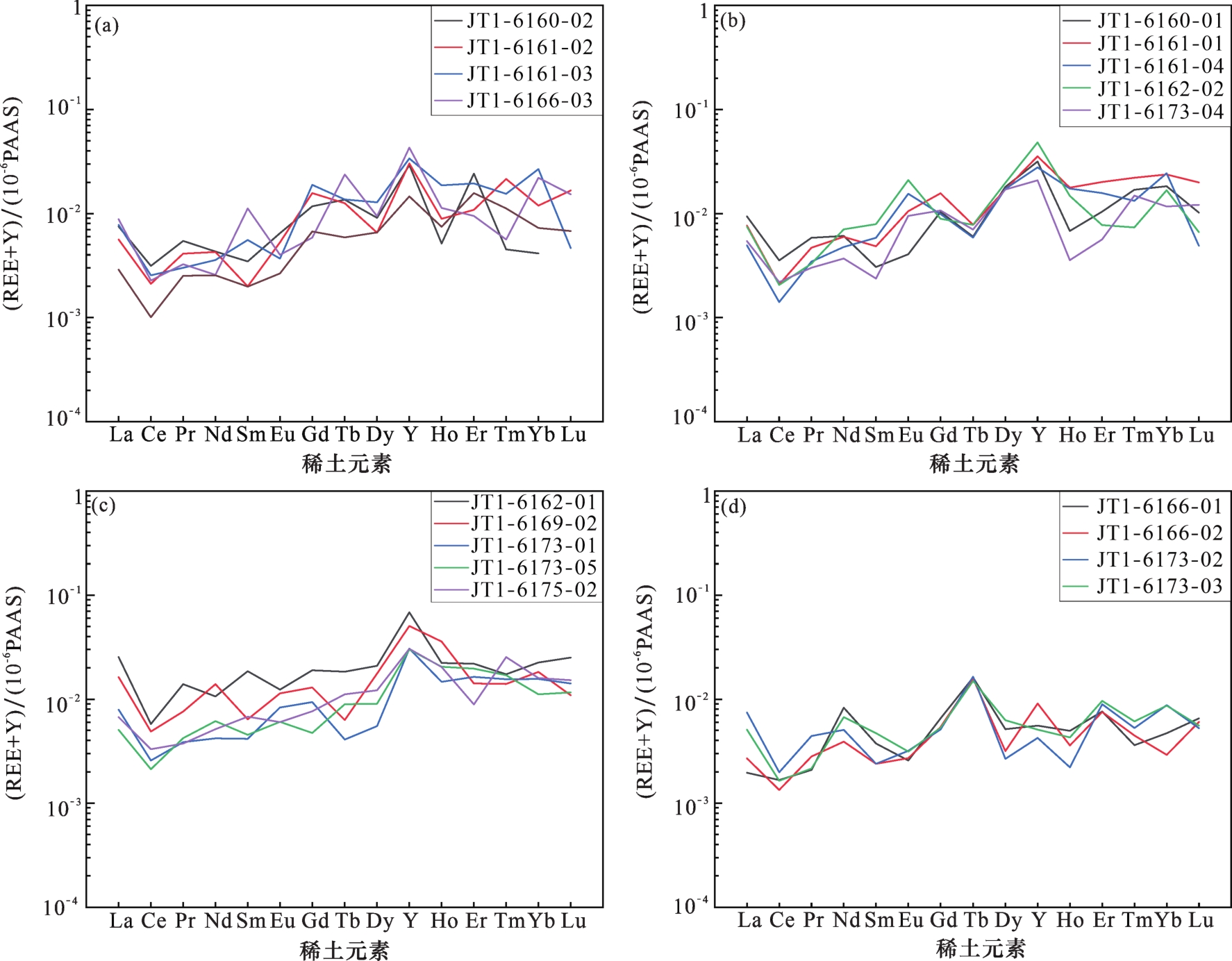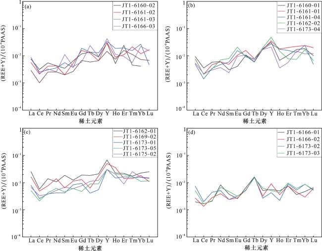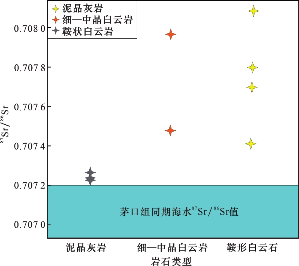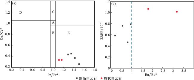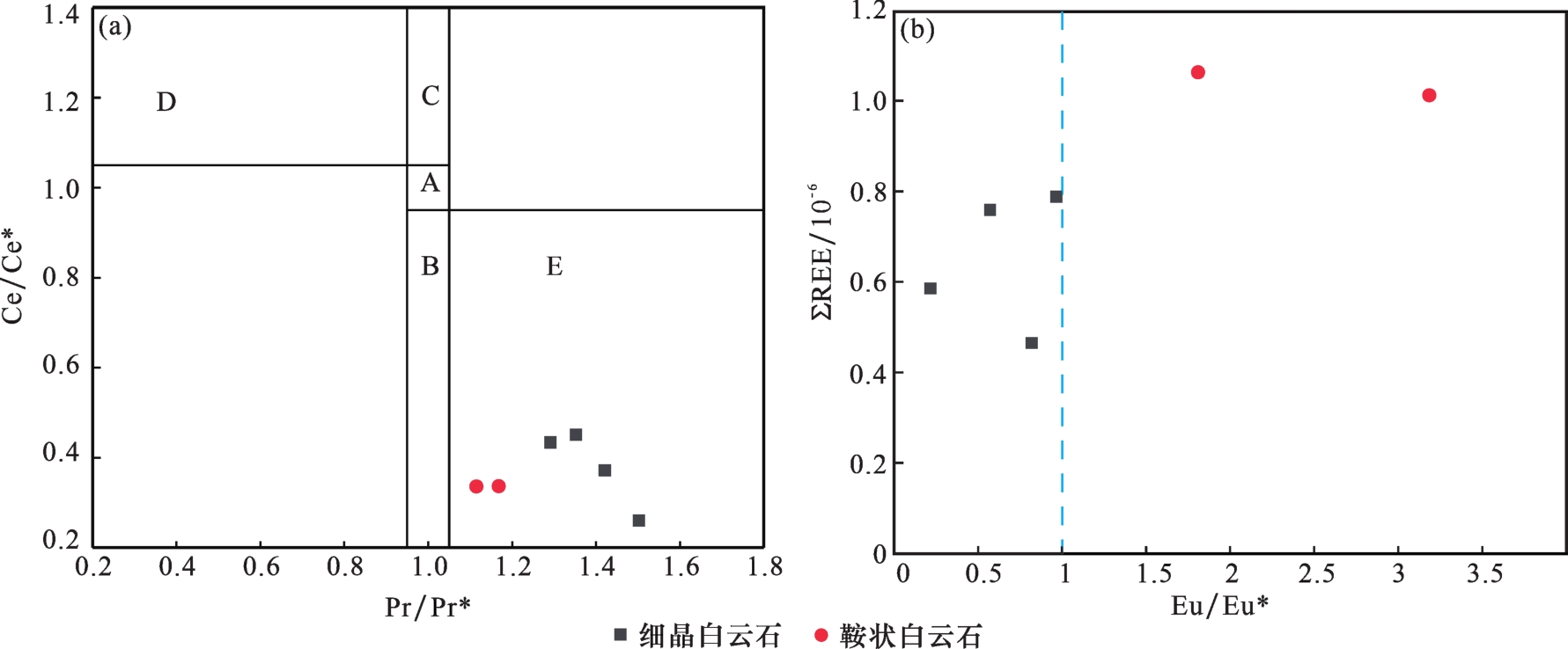 表1 研究区白云岩及灰岩微区微量元素测试结果Table 1 Test results of trace elements in dolomite and limestone micro-areas in the study area |