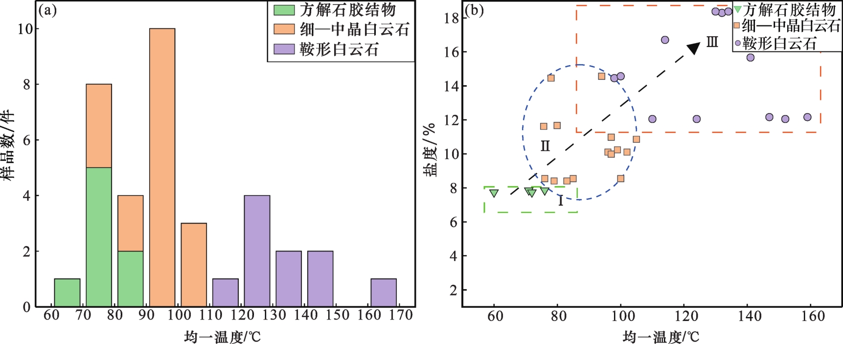 | 细—中晶白云石 | 范围 | 46.8~270 | 65.7~132 | 77.2~91.9 | 203.84~295.92 | 暗红光—红光 | 8 |