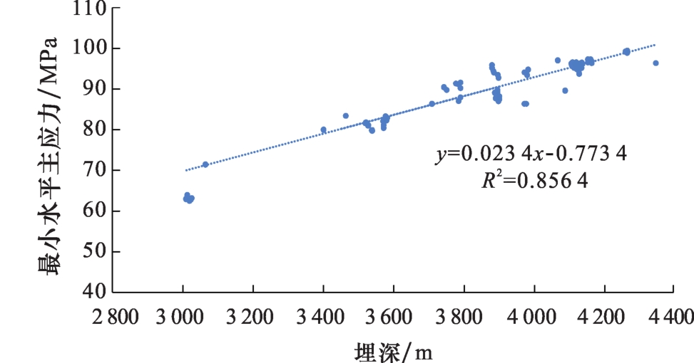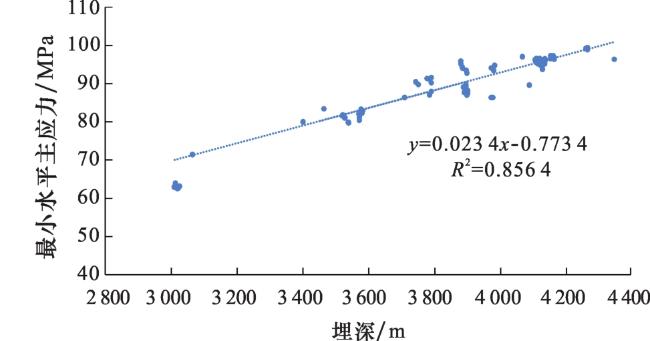 图7 川南地区五峰组—龙一1亚段最小水平主应力与埋深的关系