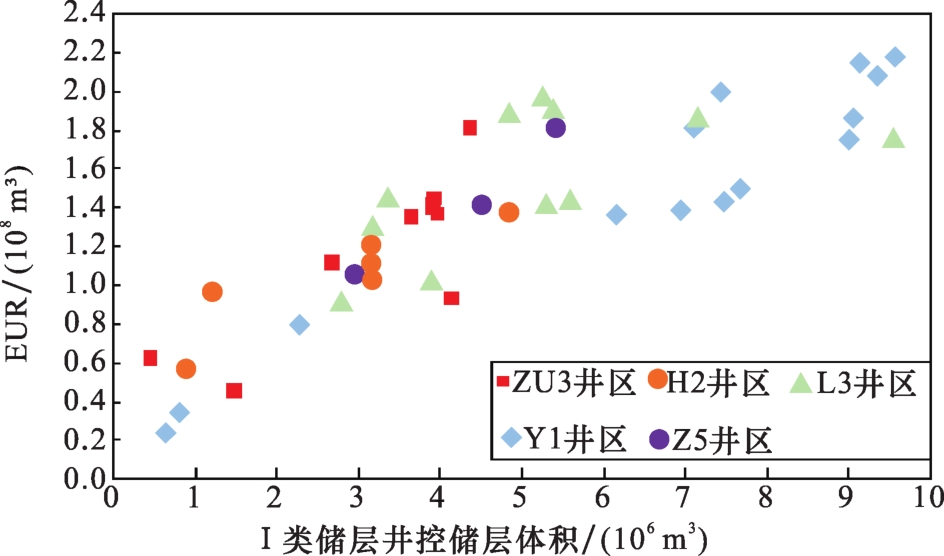 储层厚度而言,纵向储层连井图(图2)和平面储层厚度图(图5)均表明,受“三隆夹一坳”古沉积环境控制,川南地区自边缘古隆起向沉积中心方向上,Ⅰ类+Ⅱ类储层(TOC>2%)厚度、Ⅰ类储层(TOC>3%)厚度均逐渐增厚。