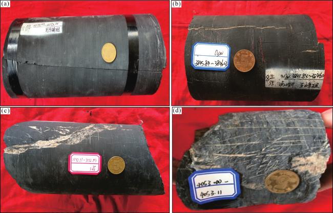 宏观天然裂缝是页岩气赋存和渗流的重要空间,同时对页岩体积压裂效果有重要影响25-26。一方面,页岩层中气体以横向移动为主,天然裂缝(尤其水平缝)是页岩气侧向扩散的高效通道27;另一方面,宏观天然裂缝是储层改造的最佳脆弱面,有利于页岩破裂压力的降低,有助于复杂人工诱导裂缝网络的形成,从而增大改造缝网总体积。