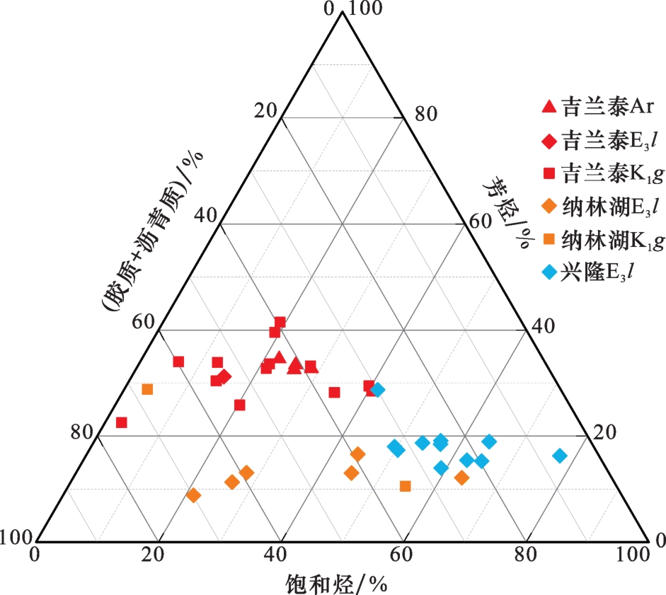 表1 河套盆地临河坳陷不同构造带原油物性参数Table 1 Physical parameters of crude oil in different structural zones of Linhe Depression in Hetao Basin |
