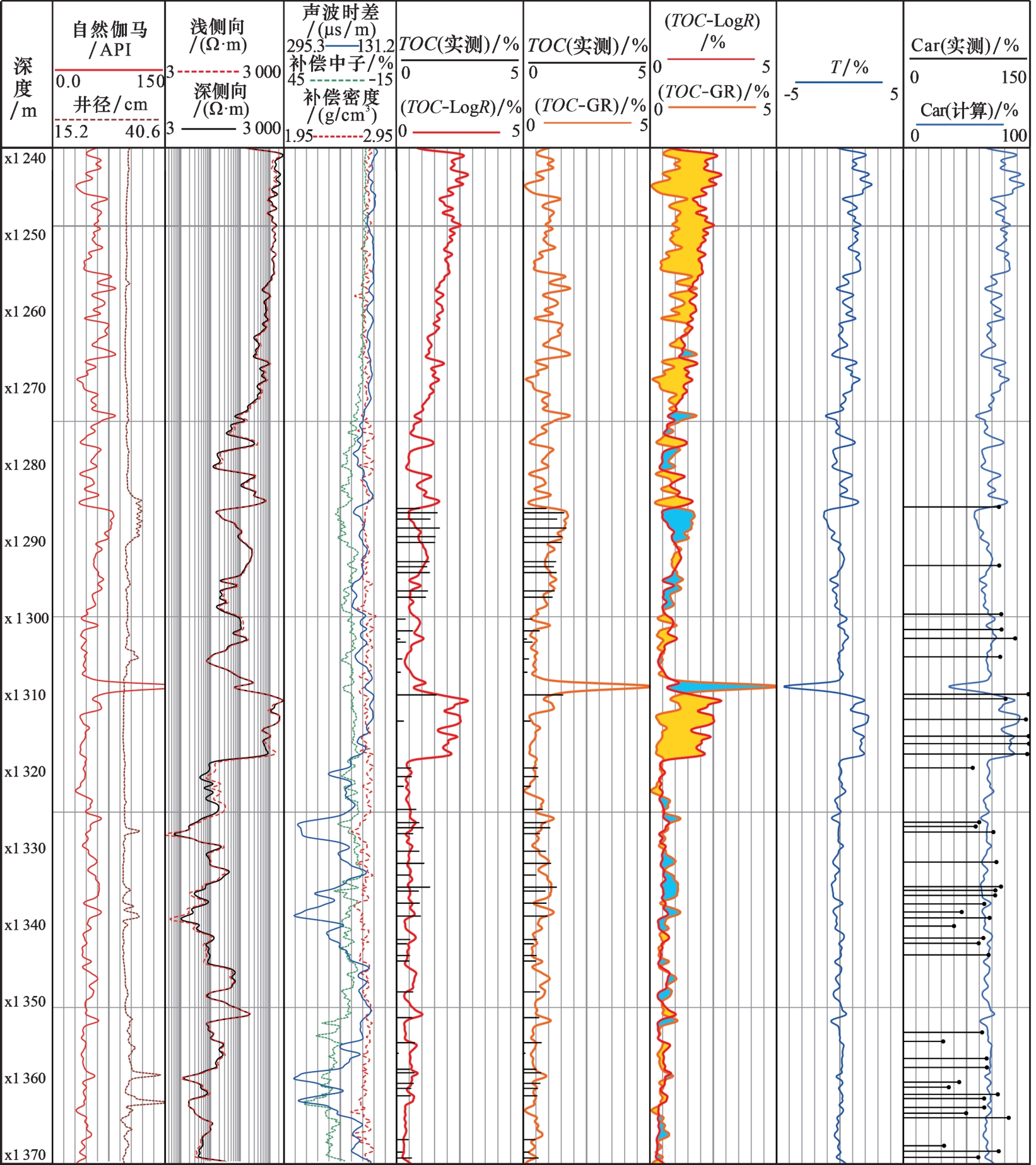 TOC。该方法在高含碳酸盐矿物层段适用性差。⑤FERTL等