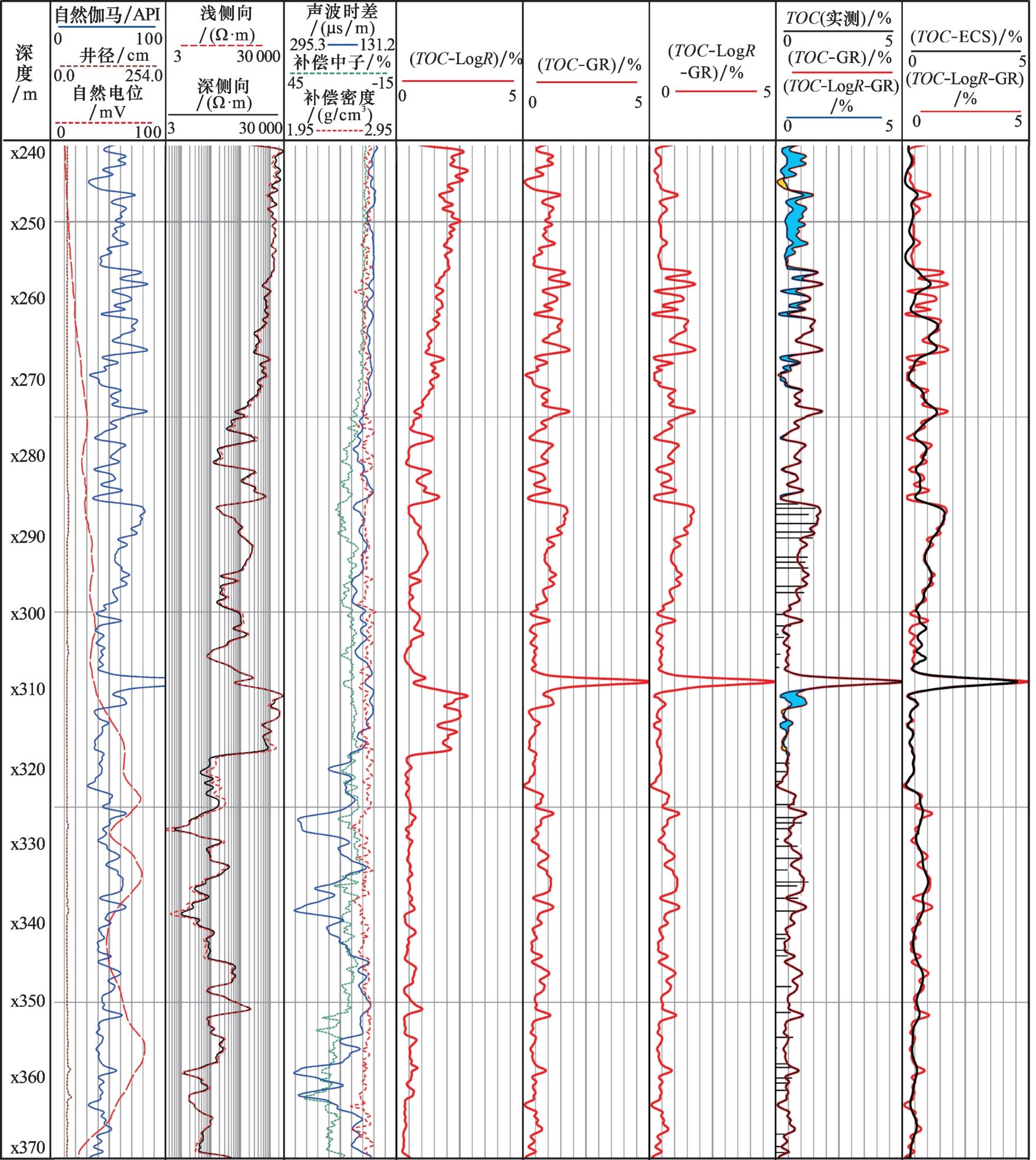 [5]通过叠合声波时差(AC)和电阻率测井曲线识别含有机质烃源岩,并提出计算