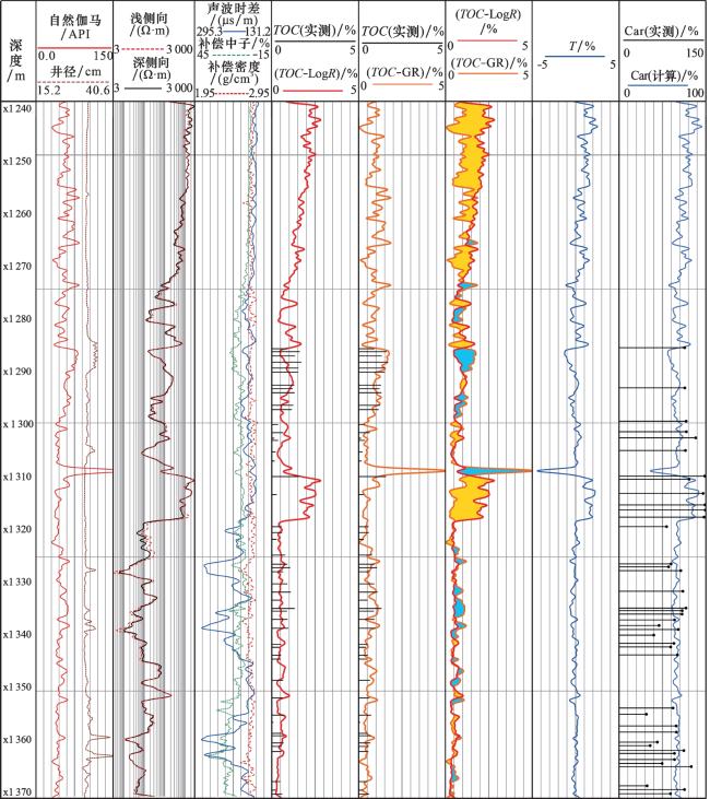 R法。然而,碳酸盐矿物与有机质电阻率均较高,通过电阻率测井易将含碳酸盐矿物较高的地层误识别为烃源岩,导致
