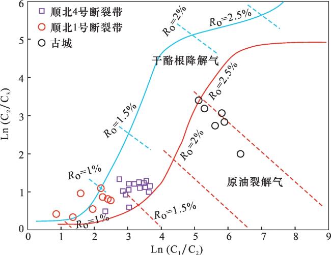 [8]对顺北邻区的富满区块凝析气藏成因做了较为详细的分析,认为富满地区奥陶系凝析气为混合成因。顺北地区深层走滑断裂体系发育,断裂多期活动