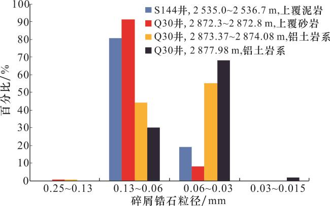 图4 鄂尔多斯盆地东部本溪组铝土岩系和上覆碎屑岩中碎屑锆石的粒径Fig.4 Particle sizes of detrital zircon in the bauxite rock series and its overlying detrital rocks in the Benxi Formation in the eastern Ordos Basin |