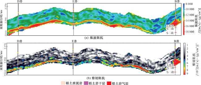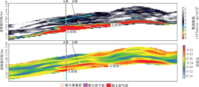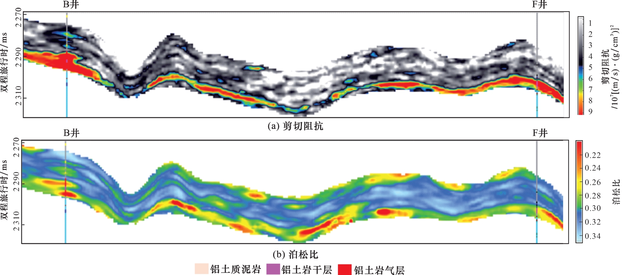 (2)岩心测试和测井交会分析结果一致:剪切阻抗为指示铝土岩岩性的敏感参数,泊松比为指示铝土岩含气性的敏感参数。铝土岩气藏岩性、含气性敏感参数的确定为储层反演方法的选择提供了依据。