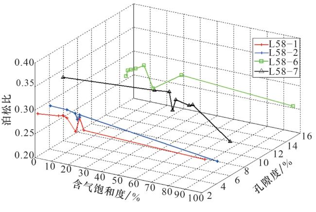 图3 铝土岩变饱和度测量泊松比结果Fig.3 Measurement results of Poisson's ratio of bauxite with increasing gas saturation |