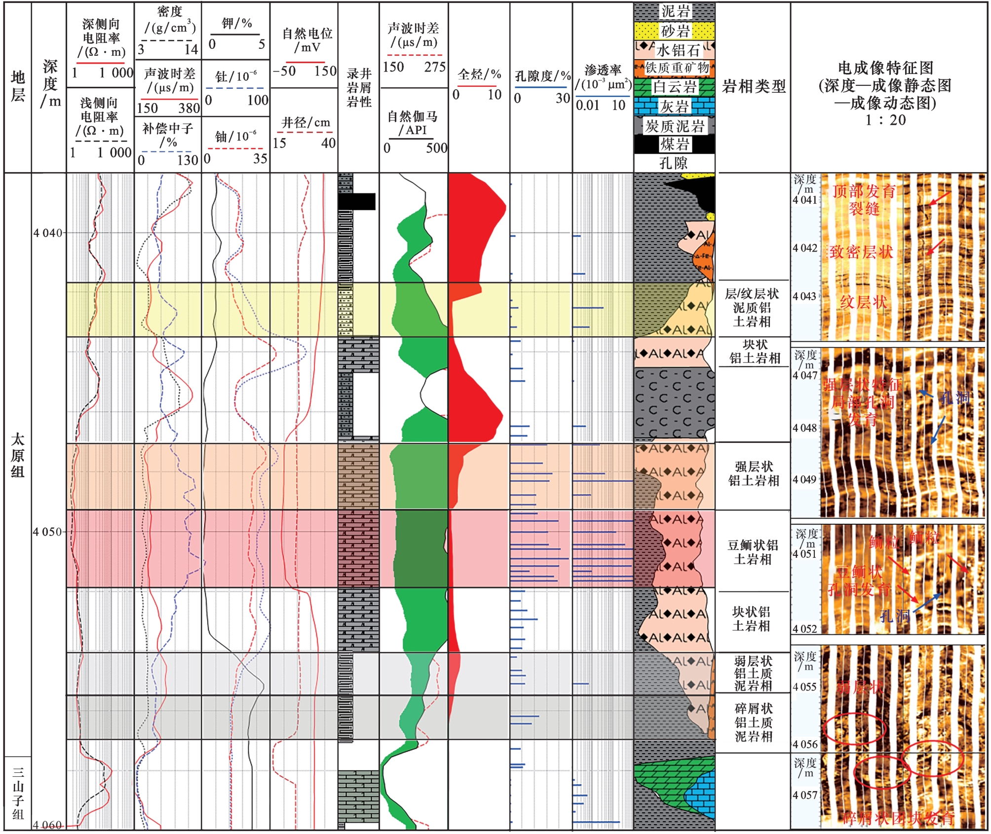 表3 太原组含铝岩岩相划分方案Table 3 Lithofacies division scheme of bauxite in Taiyuan Formation |