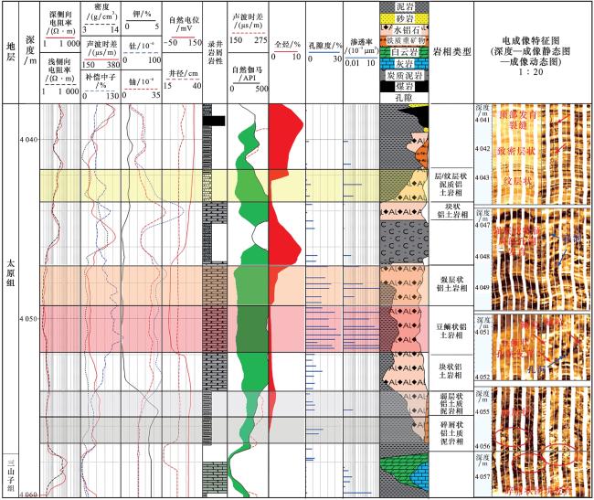 豆鲕状铝土岩相 | 豆状、纹层构造 | 鲕粒内溶孔、晶间孔 | 水铝石85.7%、伊利石8.9% | |
