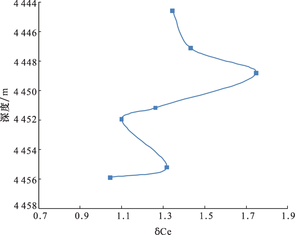 | 井号 | 井深/m | 岩性 | La | Ce | Pr | Nd | Sm | Eu | Gd | Tb | Dy | Ho | Er | Tm | Yb | Lu | ∑REE | ∑LREE | ∑HREE | L/H | (La/Yb)N | (La/Sm)N | (Gd/Yb)N | δEu | δCe |