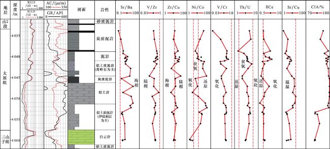 表4 沉积环境元素判别指标(据文献[15⁃29])Table 4 Identification indicators of sedimentary environment elements(according to Refs.[15⁃29]) |