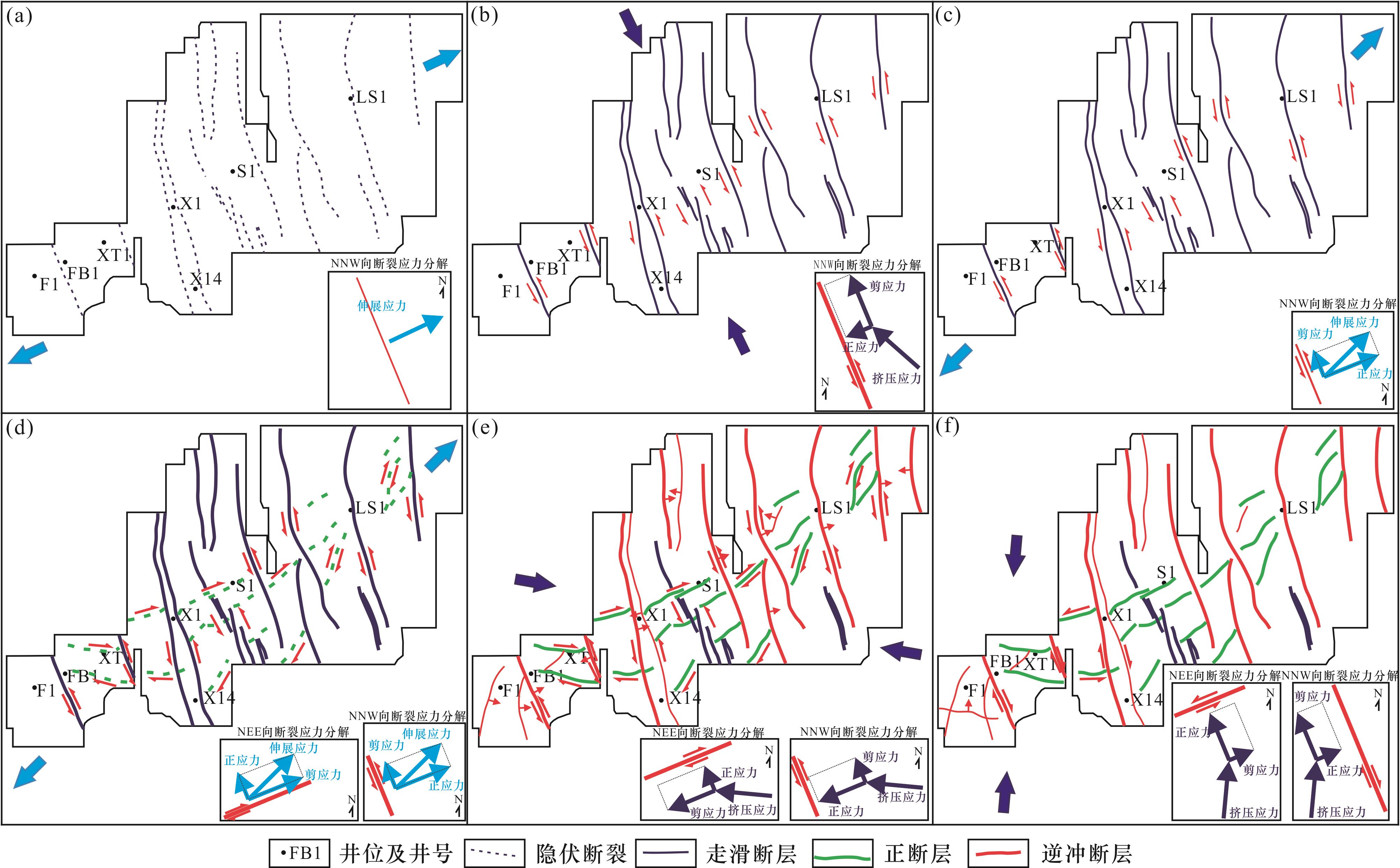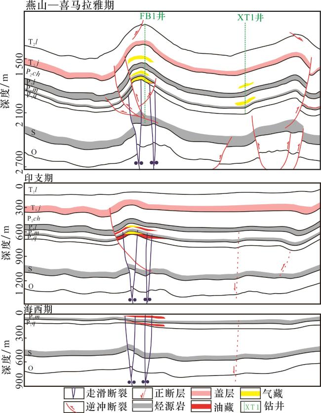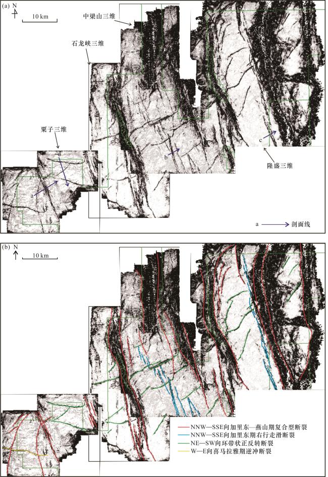 The Qijiang area on the southeastern edge of the Sichuan Basin has developed thrust fold belts since the Jurassic, but there is a lack of systematic research on multiple types of fault systems and their control over oil and gas since the deep Paleozoic. Based on the drilling and high-precision 3D seismic data, the identification of faults in Qijiang area and its adjacent areas is carried out according to the high-precision coherence and other geophysical properties. The profile shape and plane distribution are characterized, and the differences in the formation and evolution process of different faults and their control over the formation and preservation of oil and gas reservoirs are clarified. The research results indicate that the Qijiang area mainly develops two types of faults: thrust and strike slip. The profile is characterized by multiple sets of detachment layers with layered fracture characteristics. The plane mainly develops three sets of faults in the NNW-SSE, NE-SW, and near W-E directions. The NNW-SSE trending fault is a longitudinal overlap of the Lower Paleozoic strike slip fault during the Caledonian period and the Upper Paleozoic Mesozoic thrust fault during the Yanshan period; The NE-SW trending fault is a reverse thrust of the Hercynian ring-shaped normal fault during the Yanshanian period; The nearly W-E trending fault is a reverse fault formed during the Xishan period by the orogenic compression in the direction of Daluoshan on the southern edge of the basin. The development of karst reservoirs in the Maokou Formation was controlled by NNW-SSE trending strike slip faults and NE-SW trending normal faults under the tension background of the Haixi period; Under the compression background of the Yanshan period, the activation of faults formed structural fractures and connected the source and reservoir, and the overlapping of source faults and large-scale reservoirs is a key area for the exploration of Permian oil and gas in the Qijiang area; The strength of the strike slip effect of the NNW-SSE trending fault since the Xishan period controls the later stable preservation conditions of shale gas in the Silurian Longmaxi Formation.