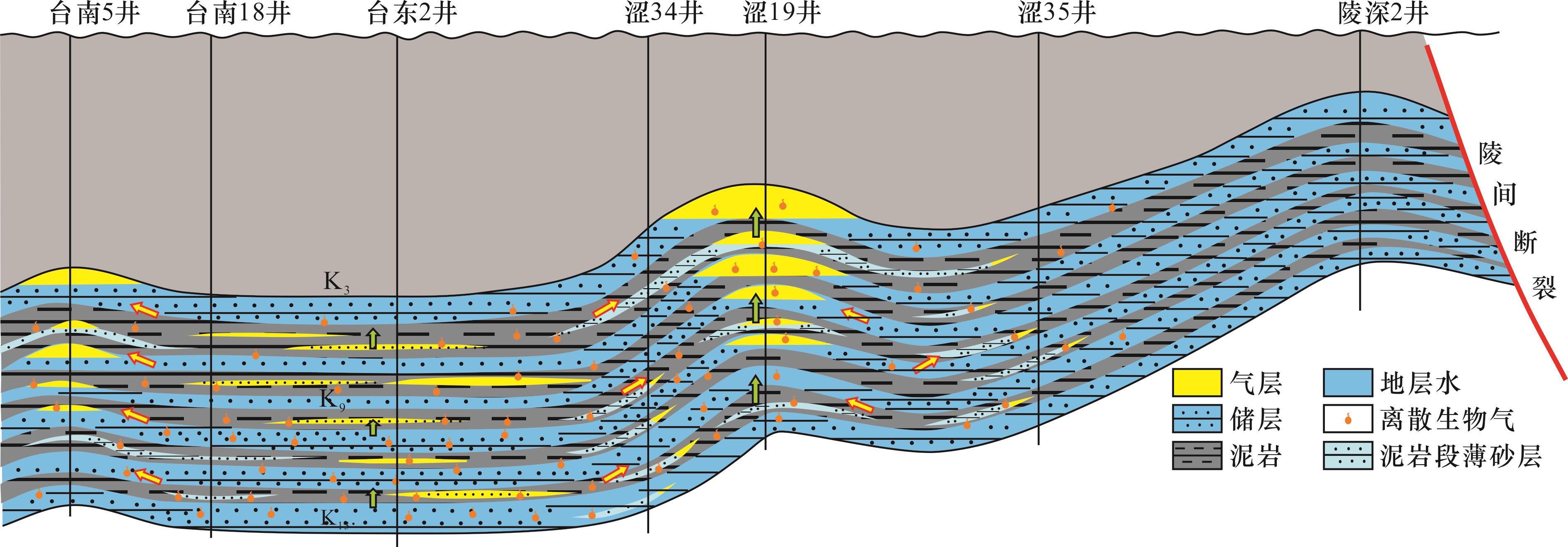 (2)涩探1、涩探2井泥岩样品中的可溶有机碳(TDOC)井是不溶有机碳含量(TOC)的5倍,37%以上的可溶有机质在1.0%以上,同时不同深度可溶有机质含量较高,有机质可供微生物大量改造、利用,生成大量生物气;天然气的赋存状态受孔隙类型的影响,第四系泥岩大尺度的孔等多类型储集空间对储层物性具有改善作用,同时有机孔中有机质的发现也证实了烃类对生物气生成具有重要贡献。