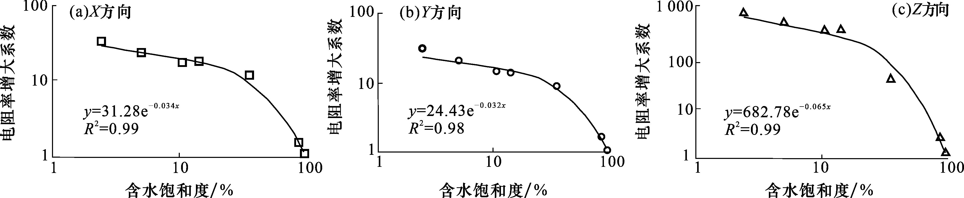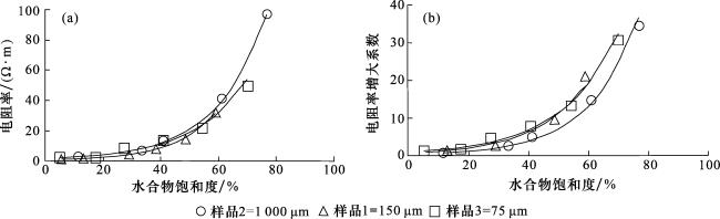 表2 不同粒径大小水合物岩样岩电实验数据Table 2 Electrical experimental data of hydrate samples with different particle sizes |