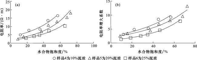 表3 不同泥质含量水合物岩样岩电实验数据Table 3 Electrical experimental data of hydrate samples with different shaliness content |