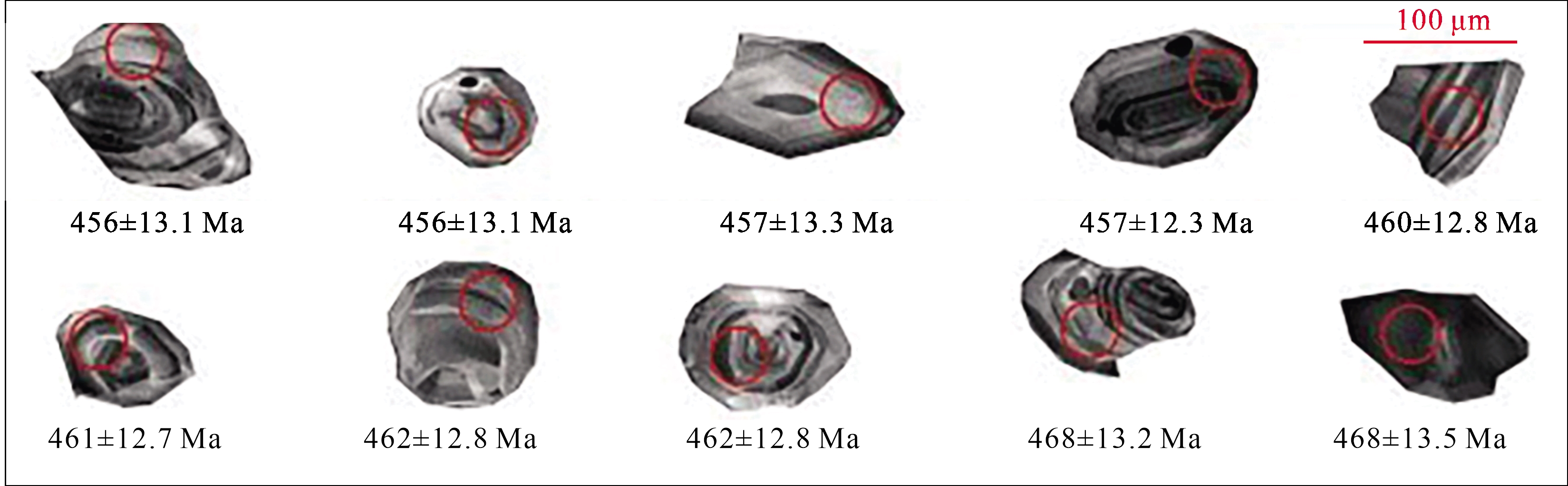 奥陶纪红花铺岩体中粒英云闪长岩 | G-5I-01 | 57.68 | 0.47 | 21.52 | 3.12 | 2.52 | 0.09 | 1.30 | 3.26 | 8.12 | 1.79 | 0.14 | 100.00 |