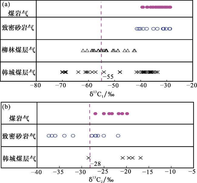 13C值(-24.5‰~-23.5‰)相近,反映本溪组煤岩气为自生自储型煤型气(