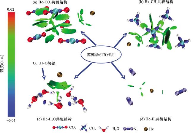 | He-CO2 | 色散+π作用 | π-π堆积+电负性 协同作用 | 面积广泛,方向性好,空间结构有序 | 较强 | 中高 | 0.018 8 |