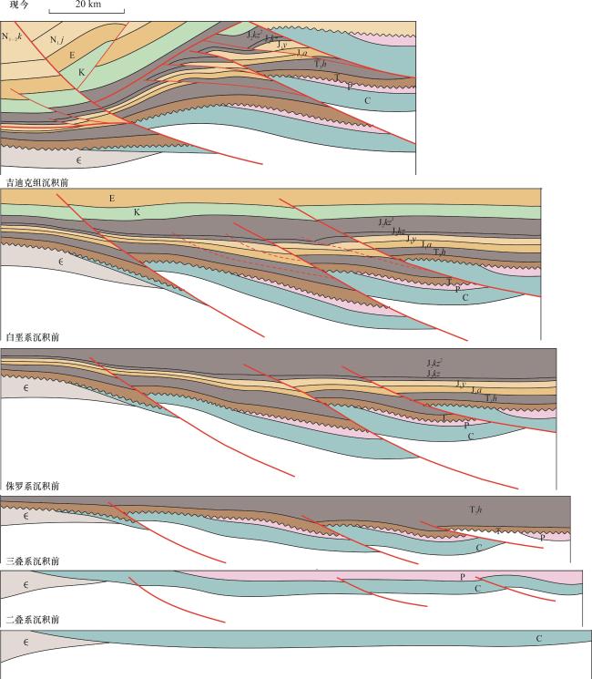 GUAN S W, CHEN Z X, LI B L, et al. Discussions on the character and interpretation model of Kelasu deep structures in the Kuqa area[J].Petroleum Exploration and Development,2010,37(5):531-537.