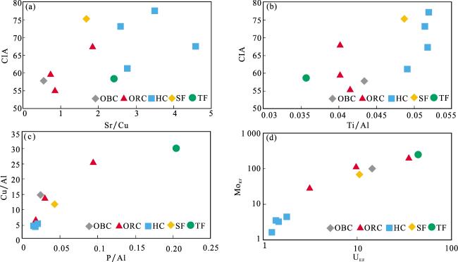 | 深度 | 主要纹层 | 岩性 | CIA | Sr/Cu | Ti/Al | P/Al | Cu/Al | UEF | MoEF |