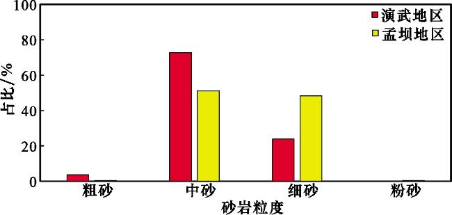 图3 研究区长8段砂岩粒度频率分布直方图Fig.3 Sandstone grain size frequency distribution histograms of Chang 8 Member in study area |