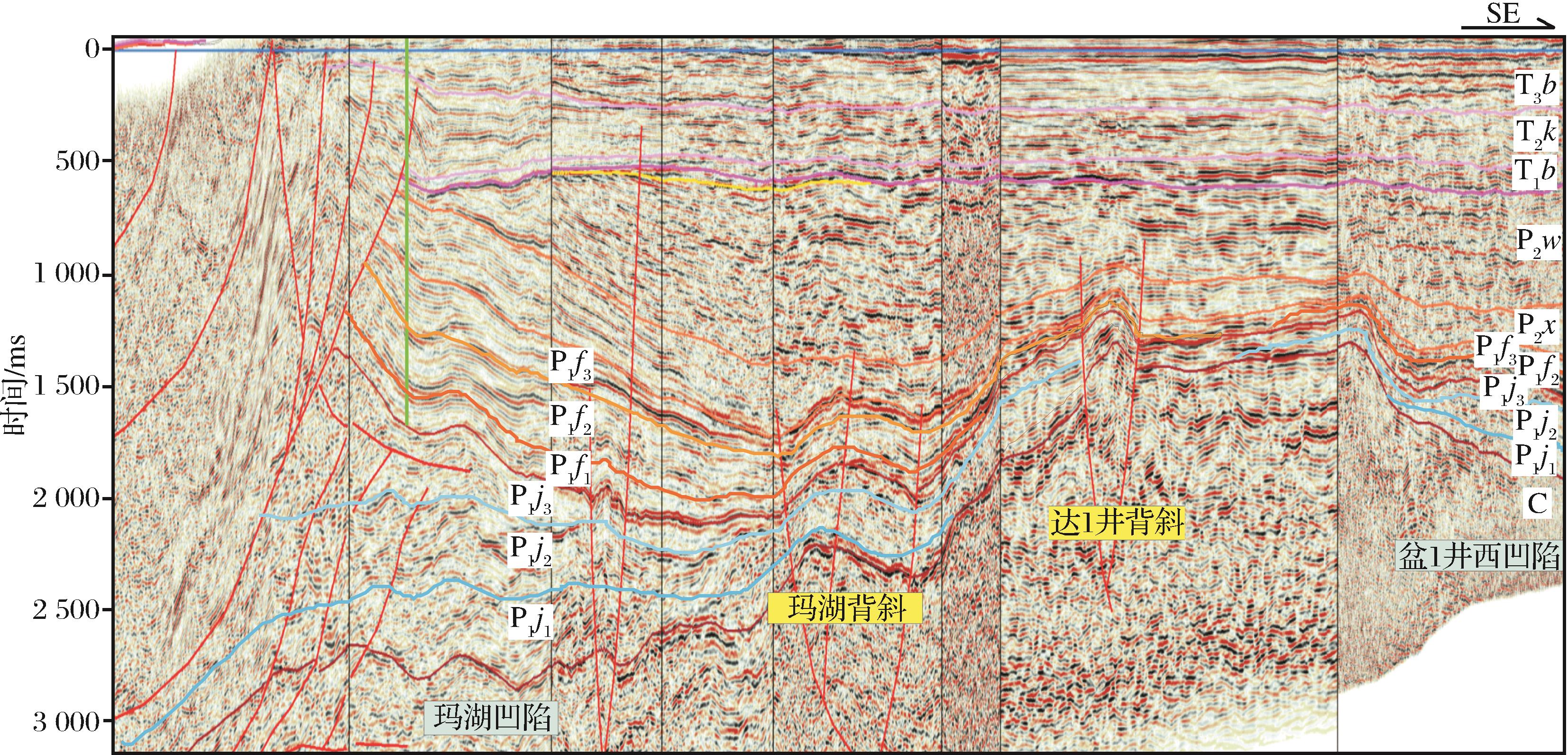 Fig.2 Pre-Jurassic seismic profile of Dayijing and Mahu anticlines